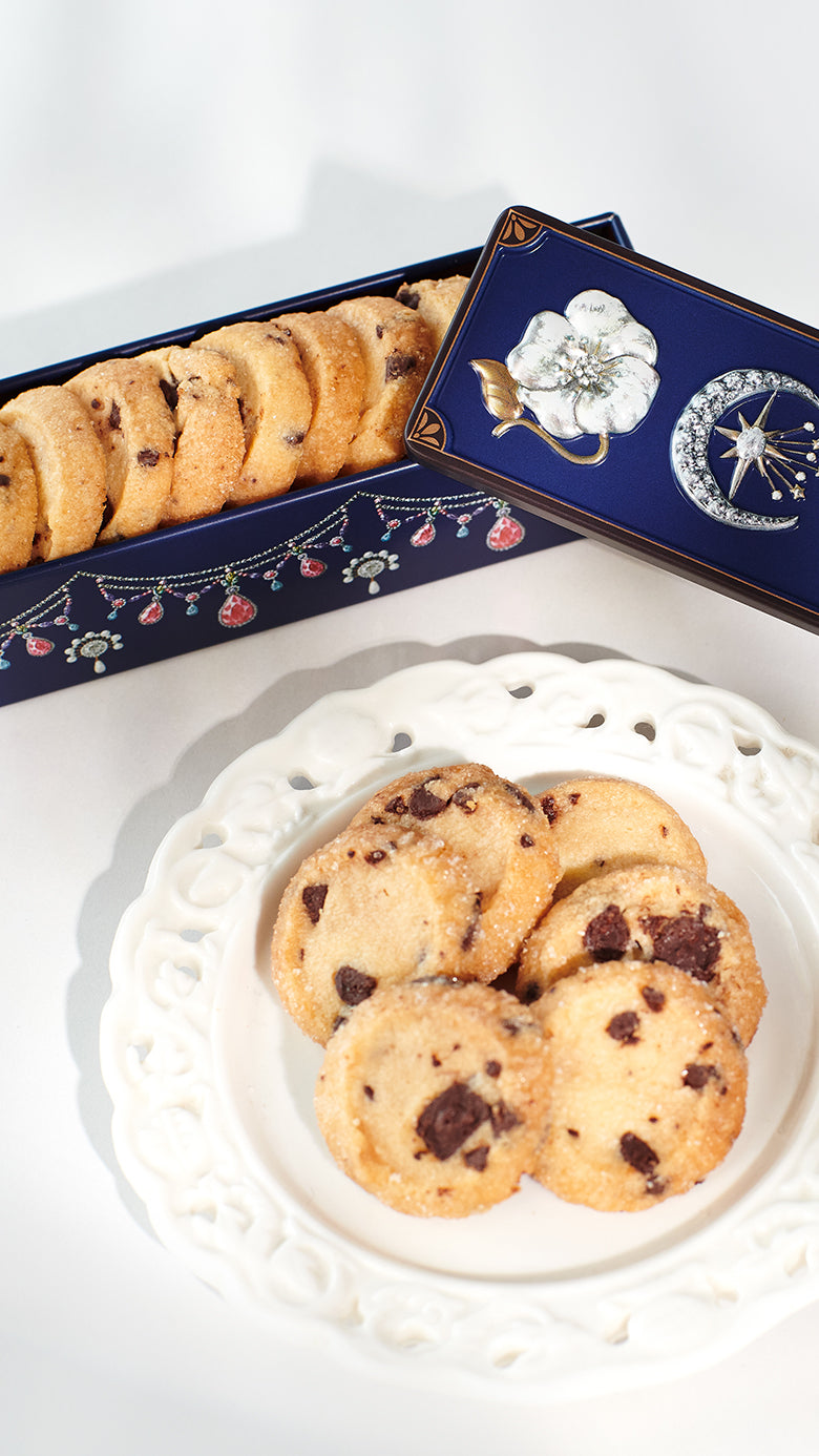 宝石箱のような深い青の缶には、チョコレートとバターの香りが広がるサブレショコラが詰まっています。