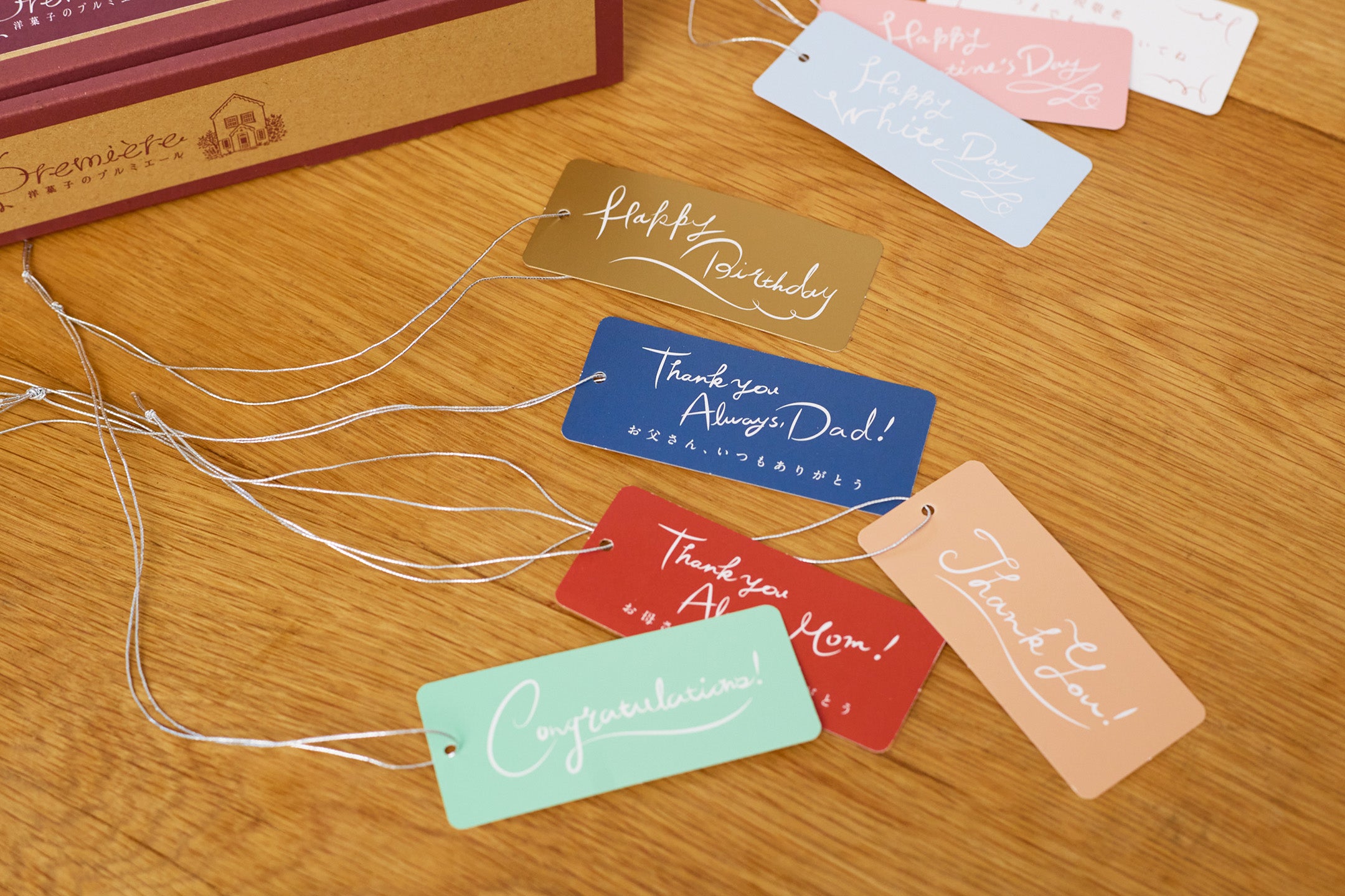 想いを伝えるメッセージの書かれたタグをお選びいただけます。お祝いや感謝のタグからお好きなものを1つ選び、選択することができます。