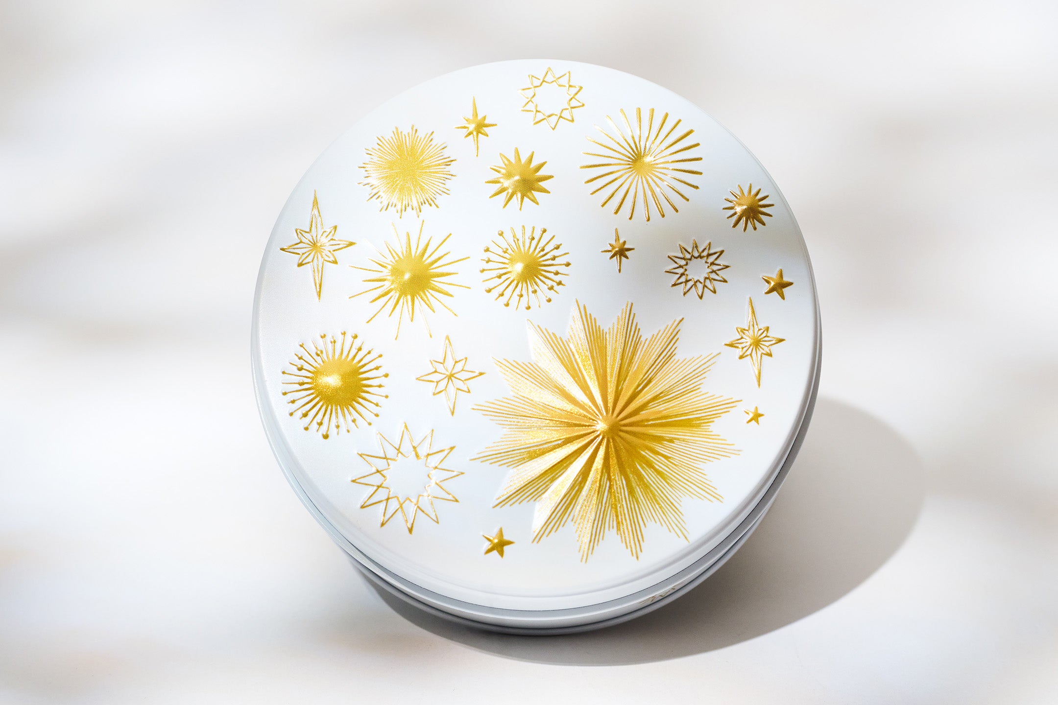 ゴールドに輝く煌めきが、オーロラを思わせる白い缶。夜空に浮かぶ幻想的な光を感じさせます。食べ終わった後も、小物入れとしてご利用いただけます。