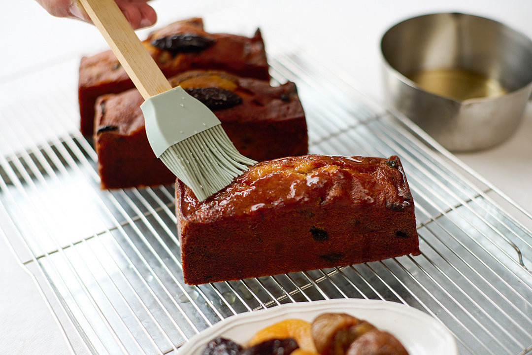 発酵バターとたっぷりのドライフルーツを焼き込みました。フルーツとケーキに染み込んだラム酒の香りをお楽しみください。