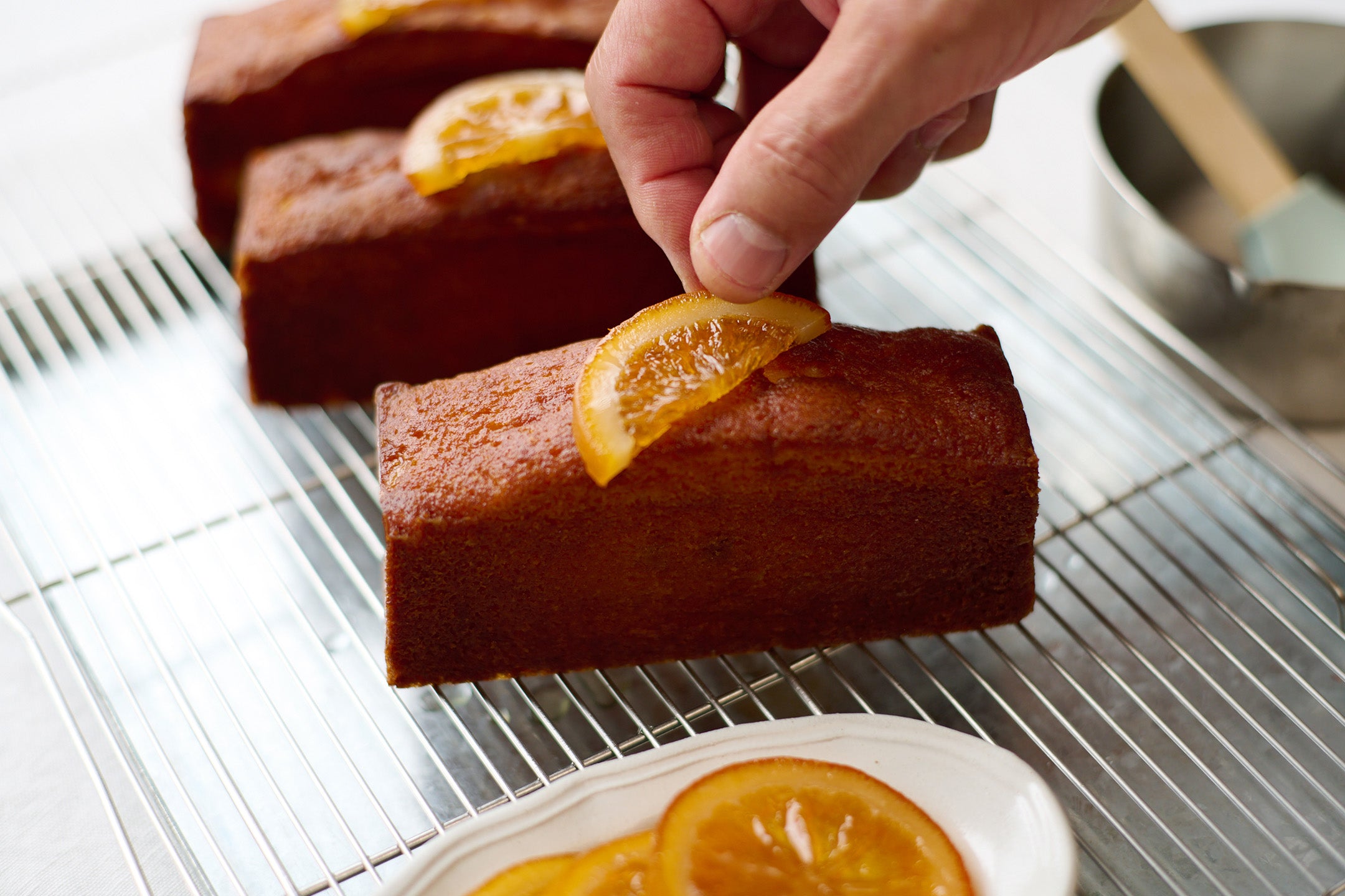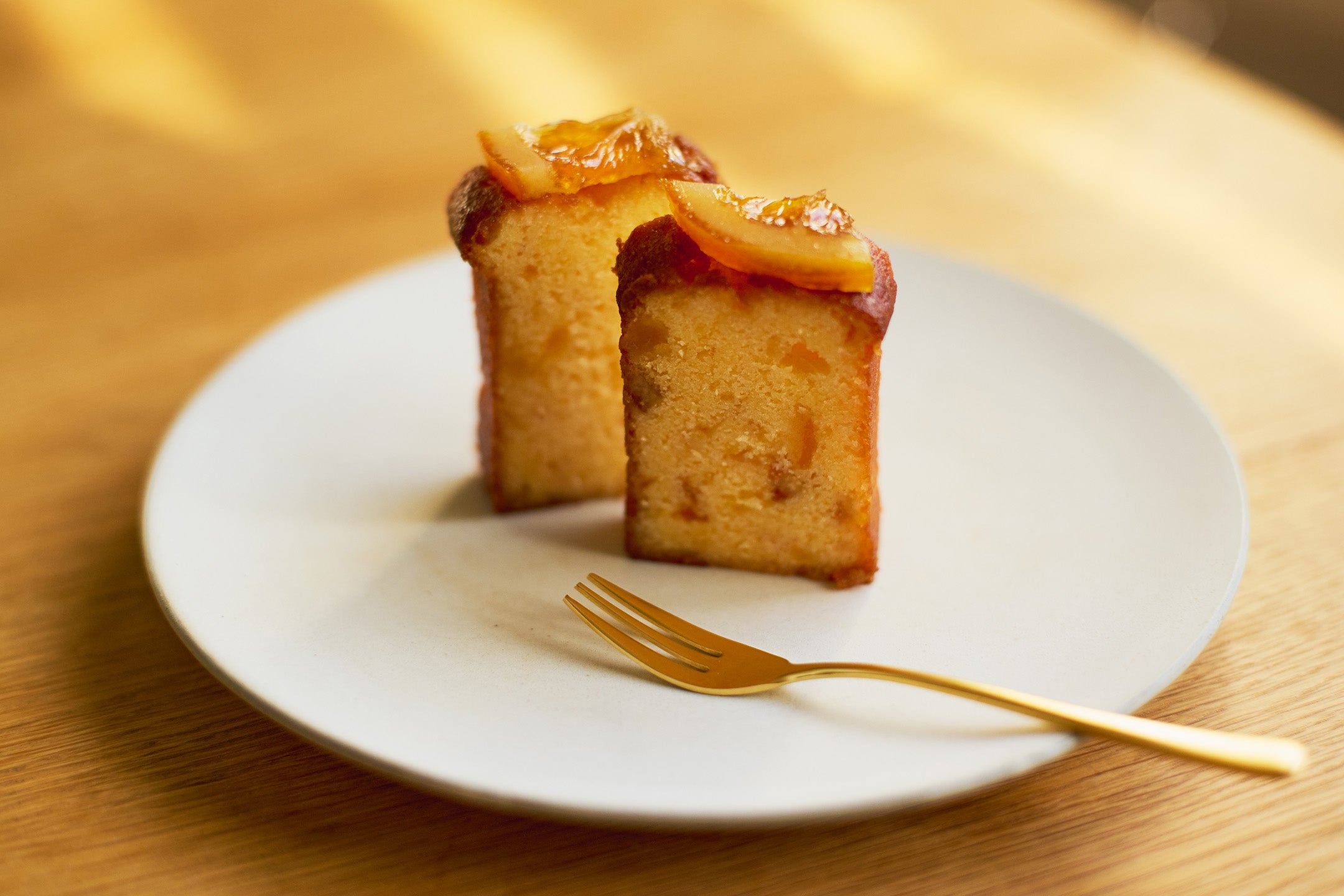スペイン産オレンジのコンフィズリーと発酵バターを贅沢に焼き込んパウンドケーキです。