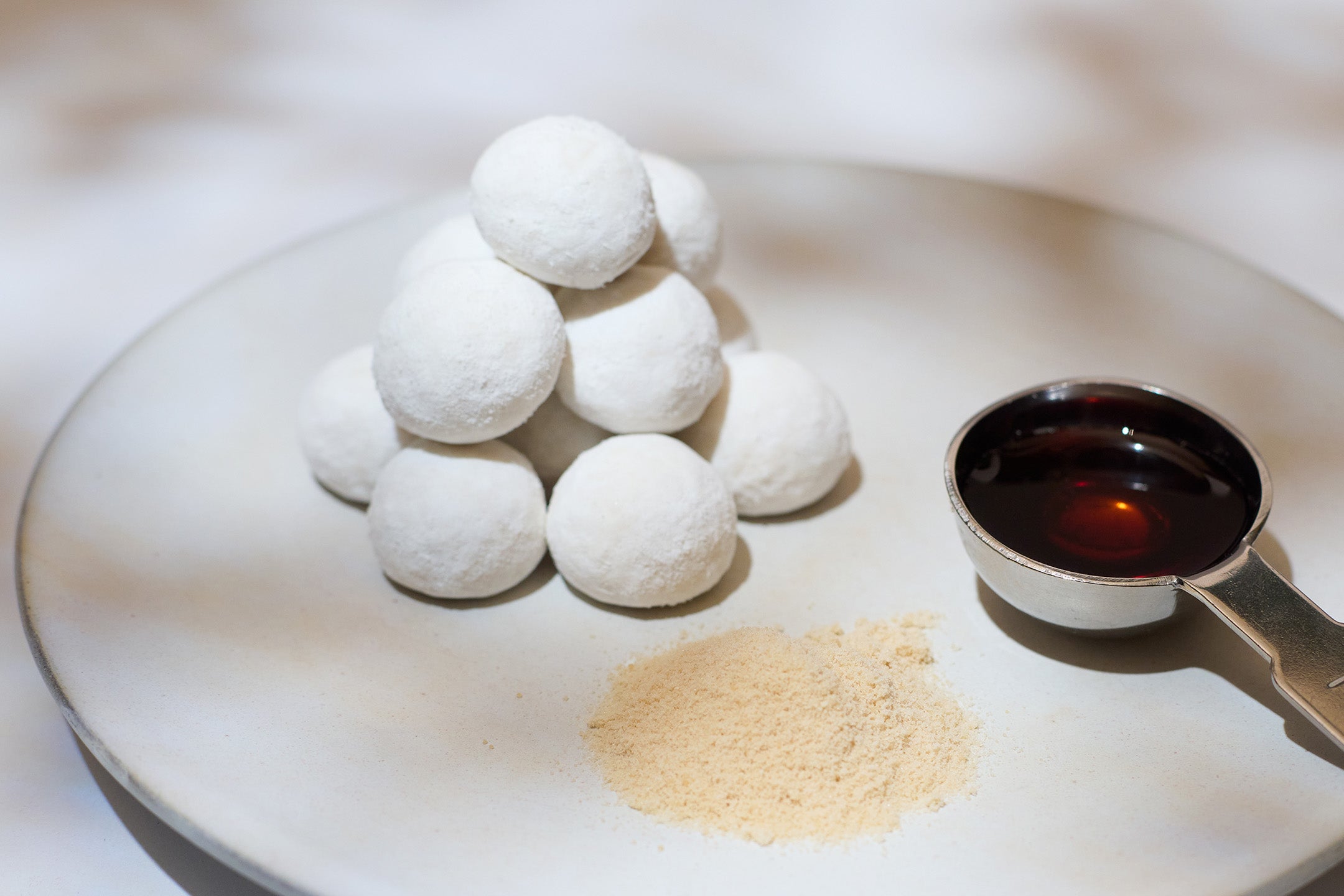スノーボールクッキーにメープルシュガーを練り込みました。さくっと軽やかに崩れ、口の中でほろりと溶ける、雪玉のようなクッキーです。丁寧にまぶした粉糖のやさしい甘さで、ふんわりとした食感が特長のクッキーです。