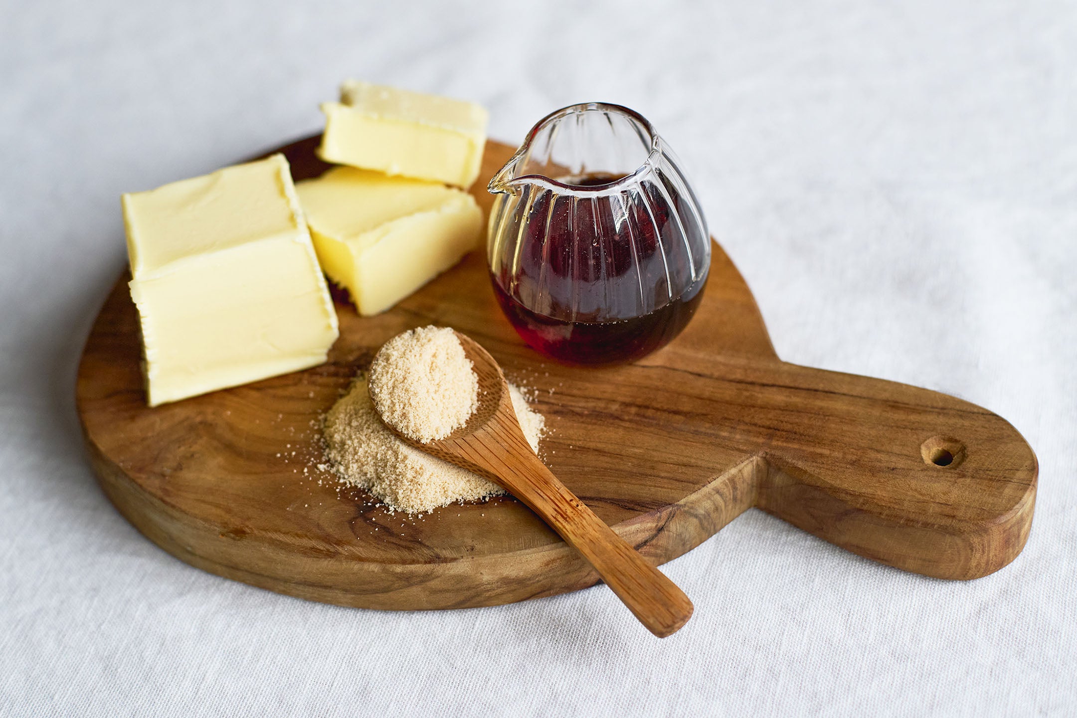 カナダ・ケベック州で採取された高品質のメープルシュガーを使用しています。また、発酵バターを加えることで、香り豊かな口あたりを実現しました。卵は使用していません。