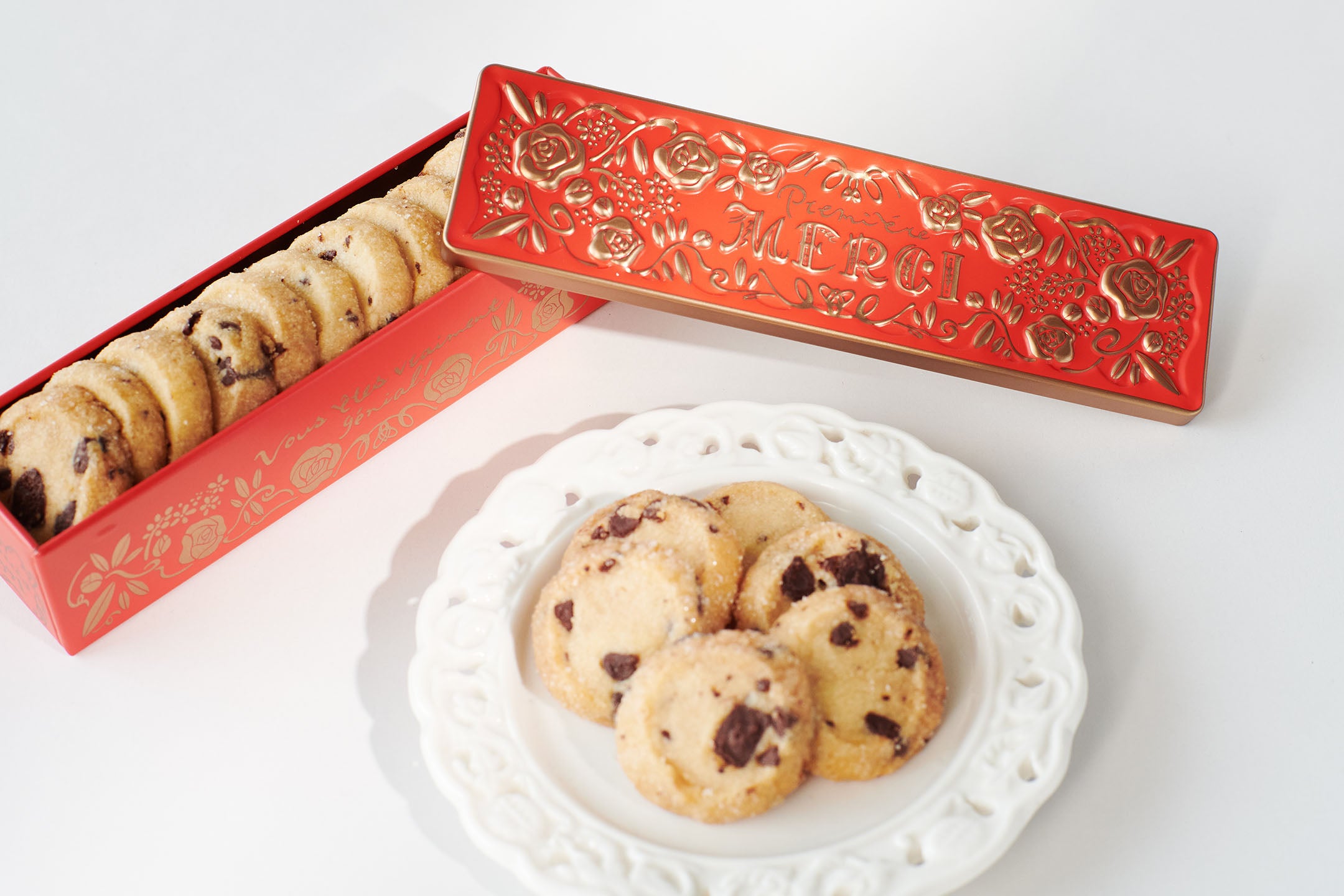 バラをモチーフにした真っ赤な缶には、チョコレートとバターの香りが広がるサブレショコラが詰まっています。