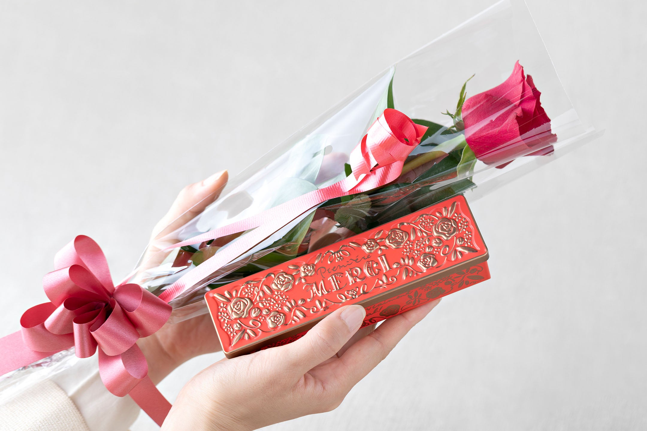 『ありがとう』を伝えるお菓子缶。バラをモチーフにした真っ赤な缶には、チョコレートとバターの香りが広がるサブレショコラが詰まっています。大切な方へのプレゼントにも、自分へのささやかなご褒美にもぴったりです。