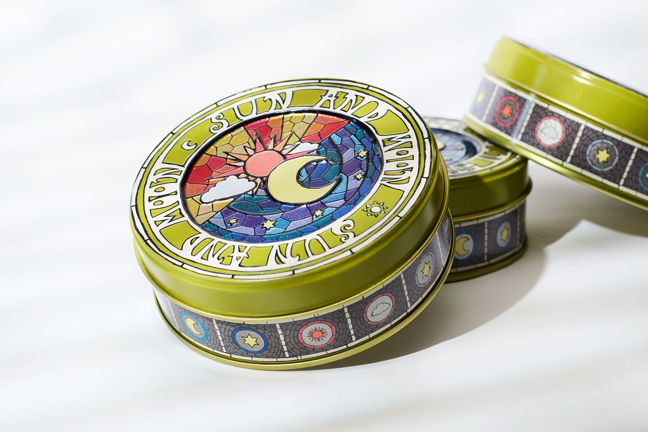 古くから伝わる「太陽と月」の物語。モザイクガラスに描かれたようなデザインは、ヨーロッパの教会を訪れた気分にさせます。食べ終わった後には、小物入れとしてお使いいただけます。